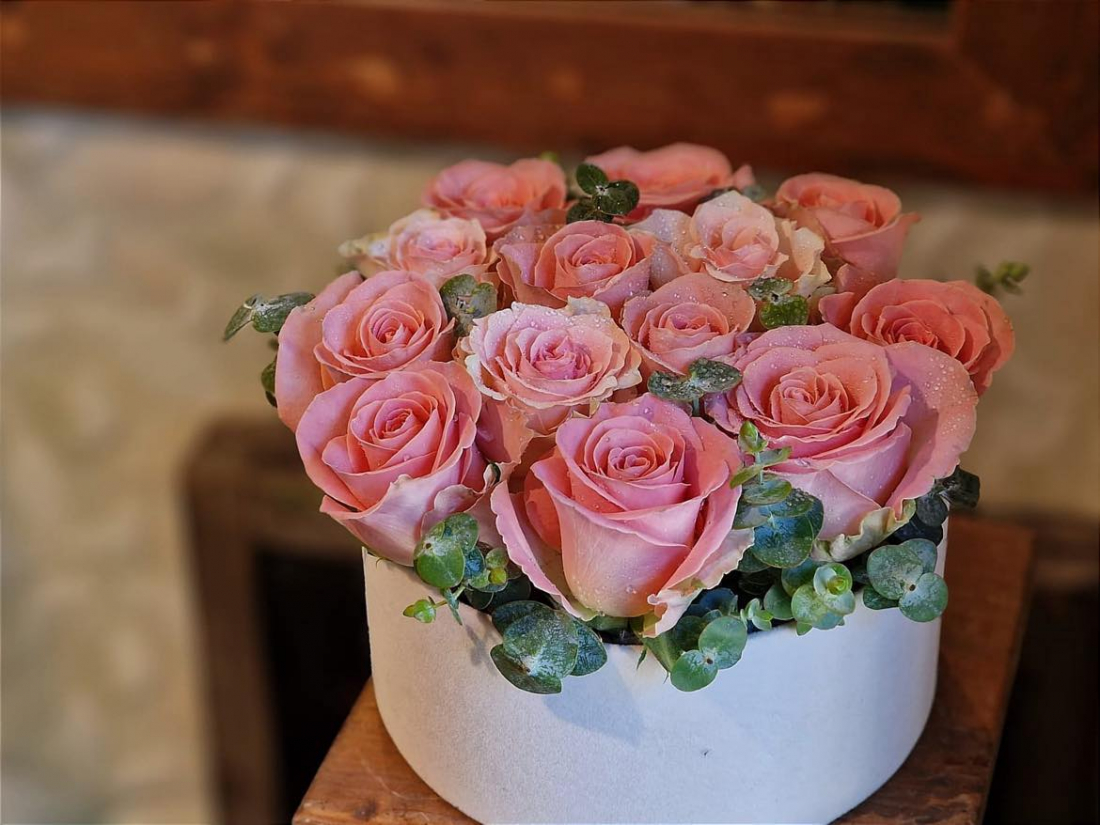 Parametri: 19 rozā rozes skaistā ziedu kastītē