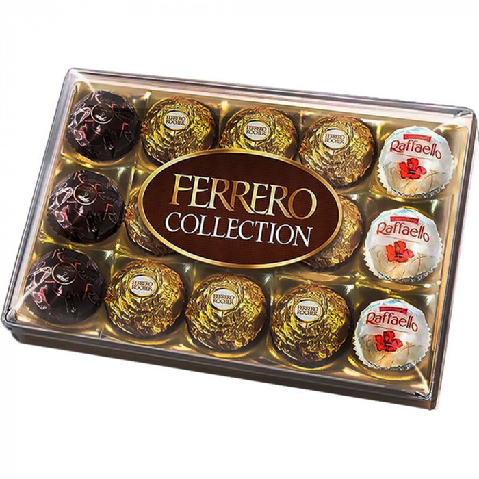 Kraukšķīga vafele pārklāta ar piena šokolādi un sasmalcinātiem lazdu riekstiem ar krējuma pildījumu un veselu lazdu riekstu.