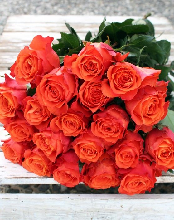 Oranžu rožu pušķis, iepakots dekoratīvajā papīrā
