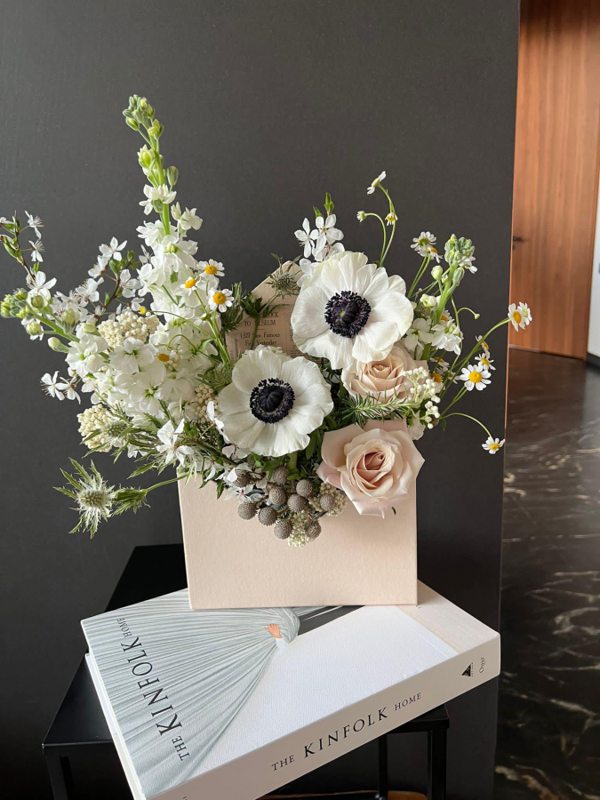 Ziedu kastīte no dažādiem gaišiem ziediem