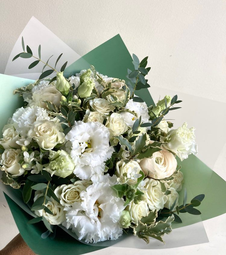 Sastāvs: Lizantes, rozes, ranunkuļi, pittosporum, oxypetalium, eikalipts